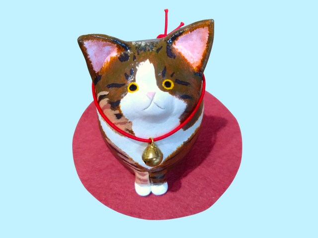 ぽってり丸みのある猫を石粉粘土で作りました。 適度な重さが付くように重量感のある素材を芯に使っています。 アクリル絵の具で色付けしています。 ノルウェイジャンフォレストキャットのマッカレルタビー&ホワイトをイメージして作った子です。 一つ一つ成形・色付けしていますので、同じものはありません。 お気に入りを見つけていただけると幸いです。 鈴付きの首輪、丸いフェルト付き サイズ:約7cm×5cm ふるさと納税の返礼品では招き猫のペアをご用意してます。 https://www.furusato-tax.jp/product/detail/01206/26090672?copy_key=dcc31f20ac4c39b6ab3199bff0fb456caefd35c3 当店でお買い物していただくと、主に北海道銘菓など北海道に関する物をオマケで付けていました。 クッション材の代わりに入れる事で少しでもゴミを減らす目的と、ご注文いただく事への感謝の気持ちです。気に入っていただけたら、幸いです。
