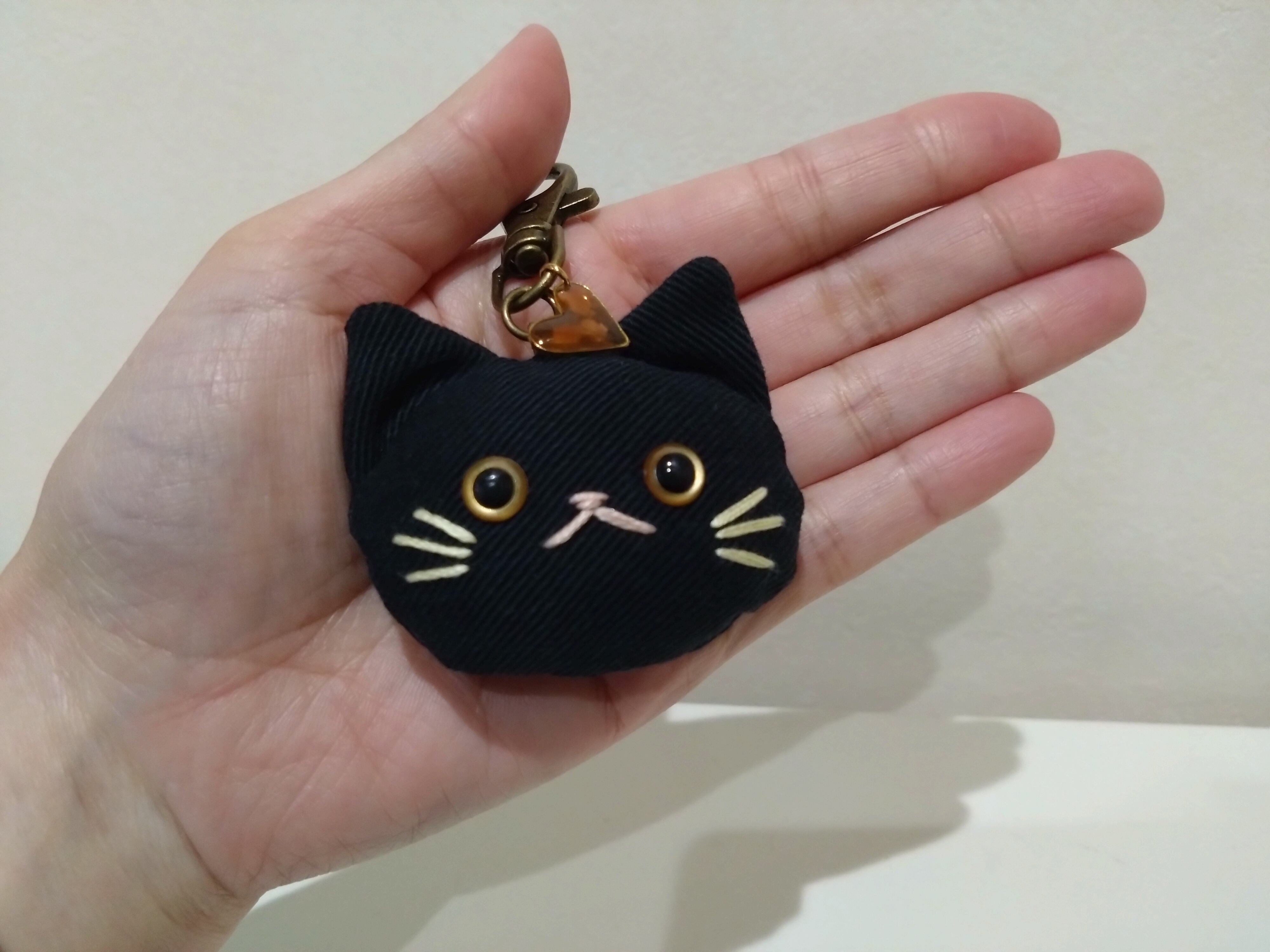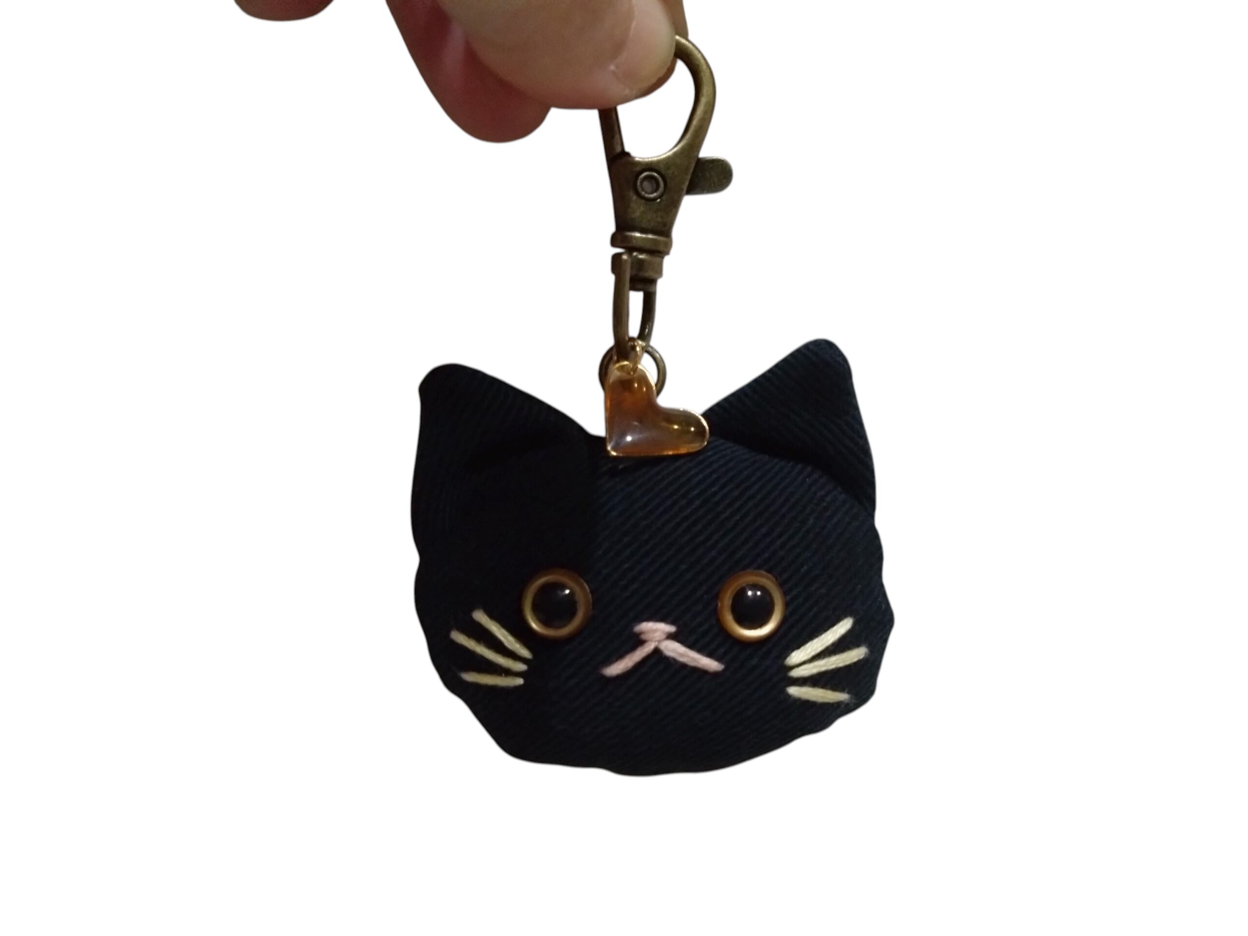 【クリックポスト対応】黒猫キーホルダー ブラウンのハート付き ハンドメイド ねこのもり