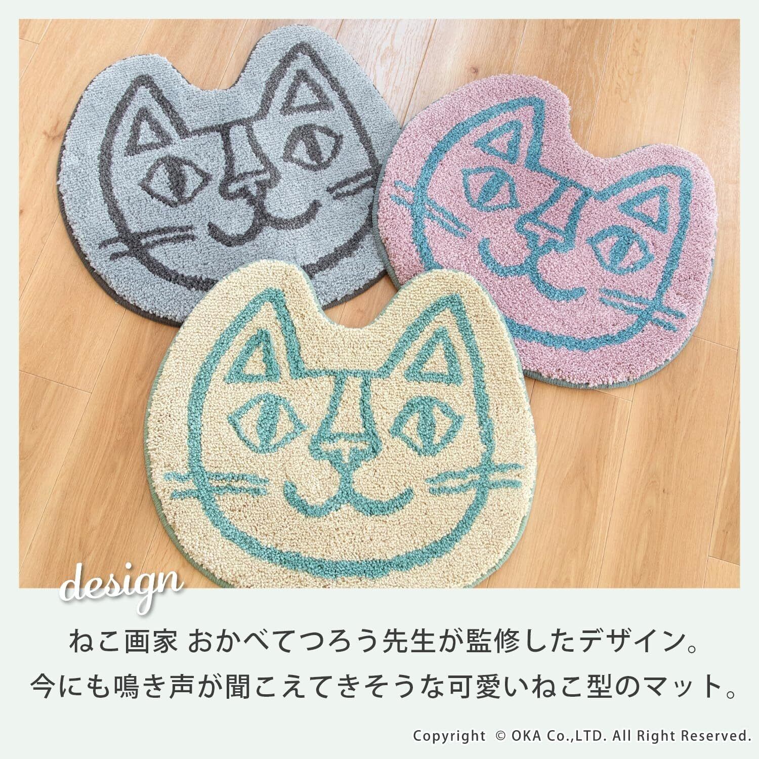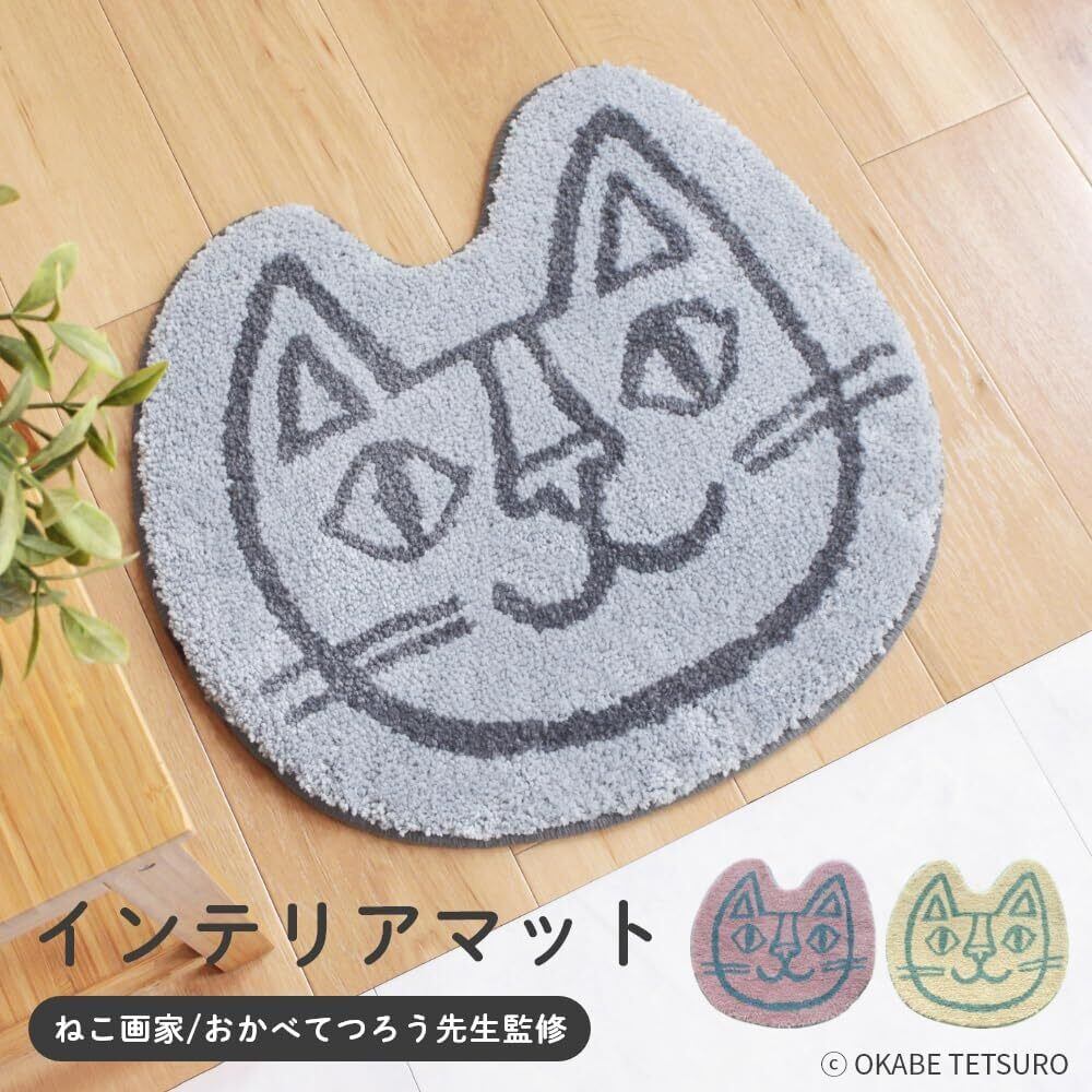 ねこ画家、おかべてつろう先生のねこのイラストが、かわいいねこ型のマットになって登場。