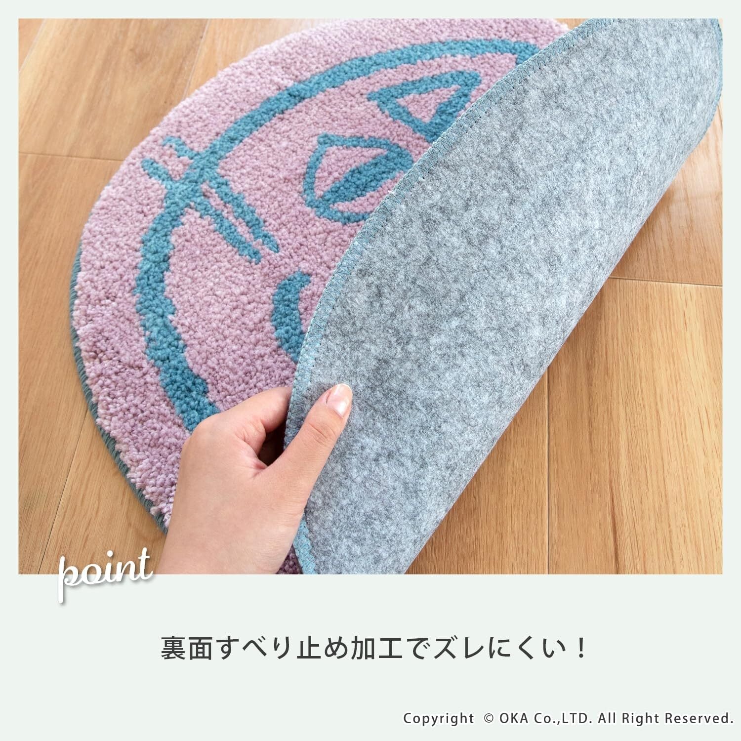 裏面にはすべり止め加工が施されており、おうちの様々な場所に敷いてもズレにくいのが嬉しいポイントです。