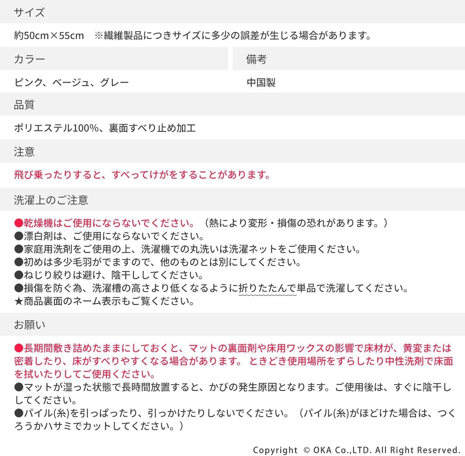 品質:ポリエステル100%、裏面すべり止め加工