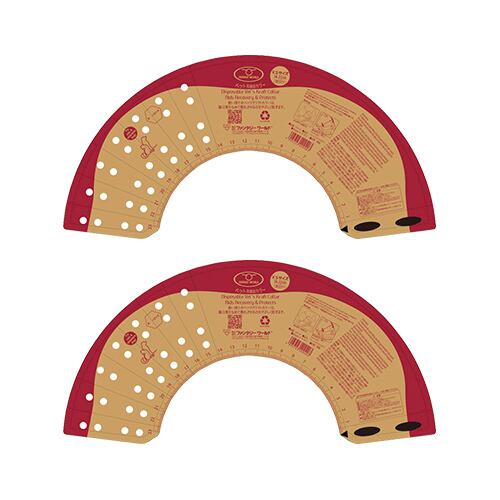 別の用途としてベッツクラフトカラーにはネックラインに沿ってメモリが付いており、首のまわりの長さを図る事にも使用していただけます。予備の留め具も付属されています。