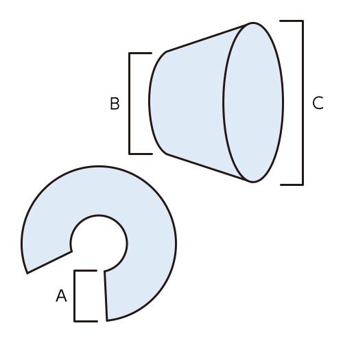 CD1 首周り-開口部の長さA:9cm 首周り 直径B:5.5~6cm 開口部直径C:18~21cm