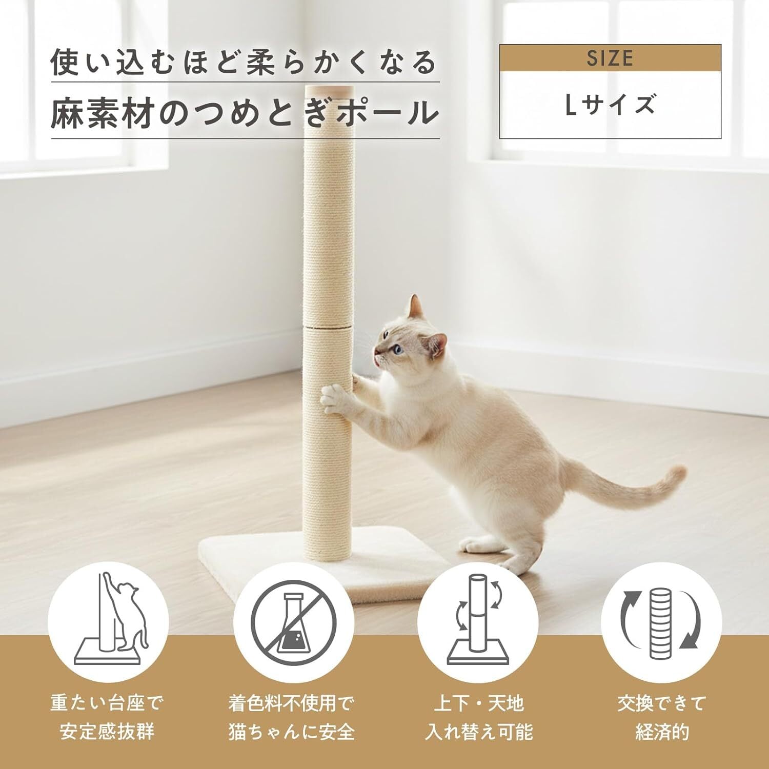 猫壱 バリバリつめとぎポール 麻 爪研ぎ Lサイズ ねこのもり