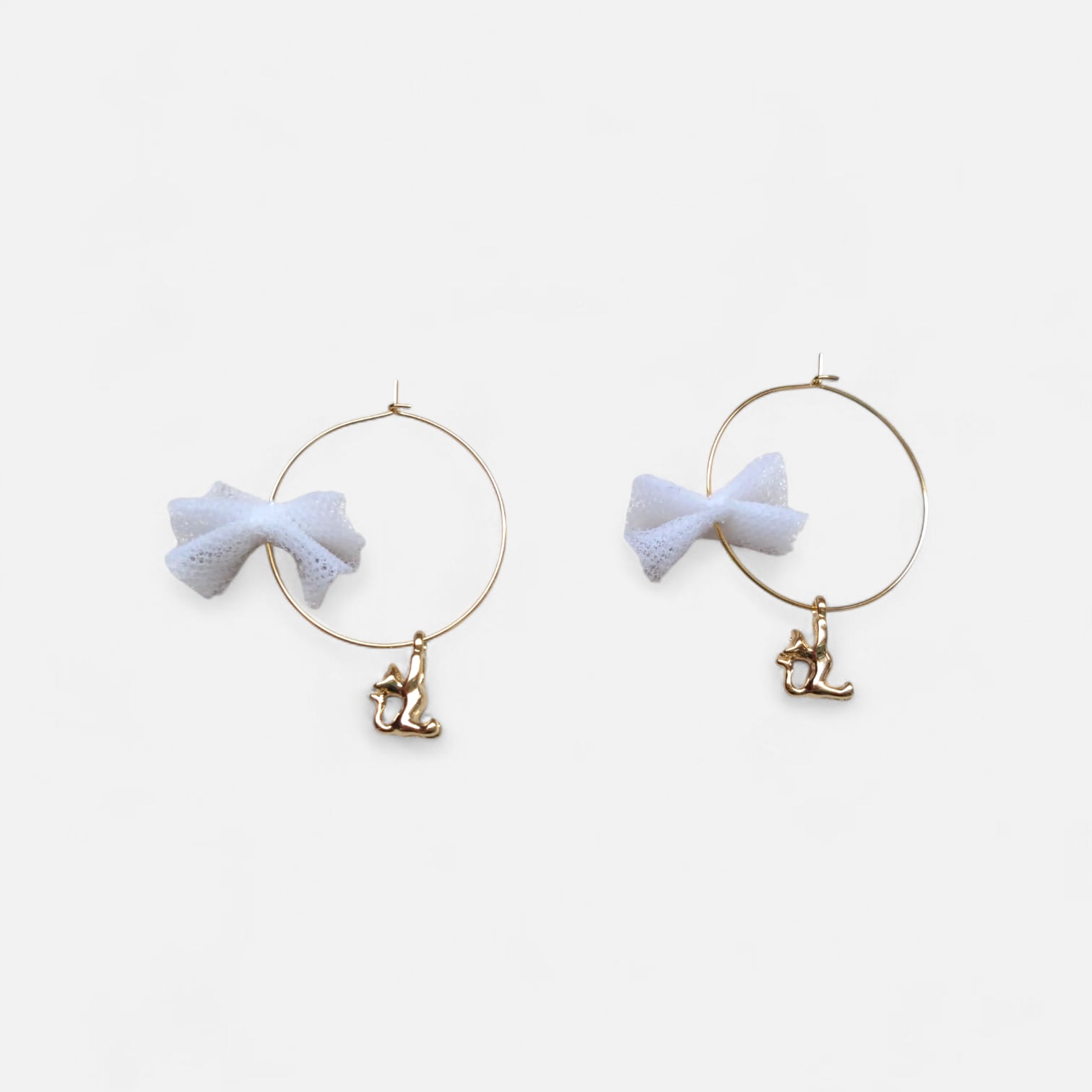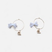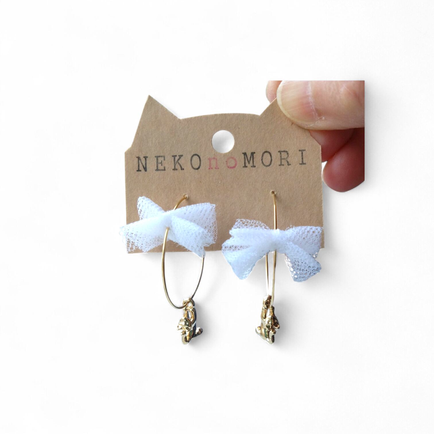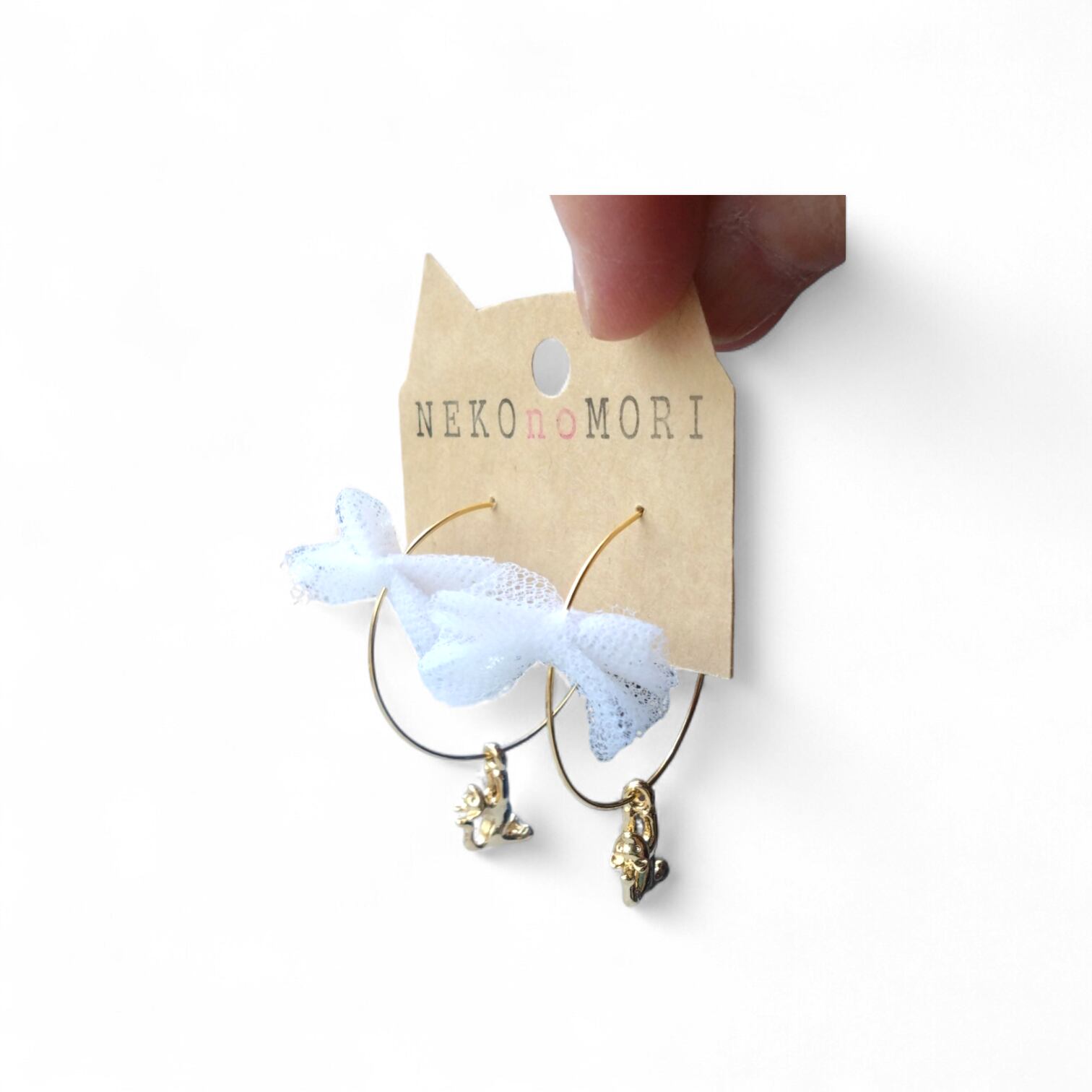 【クリックポスト対応】1200フープピアス レースリボン ぶら下がり猫 ねこモチーフ ねこのもり