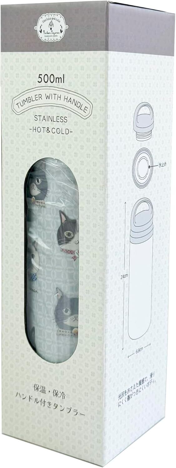 パーラーすずらん堂 保冷保温ハンドルタンブラー Lサイズ 500ml グレー ねこのもり